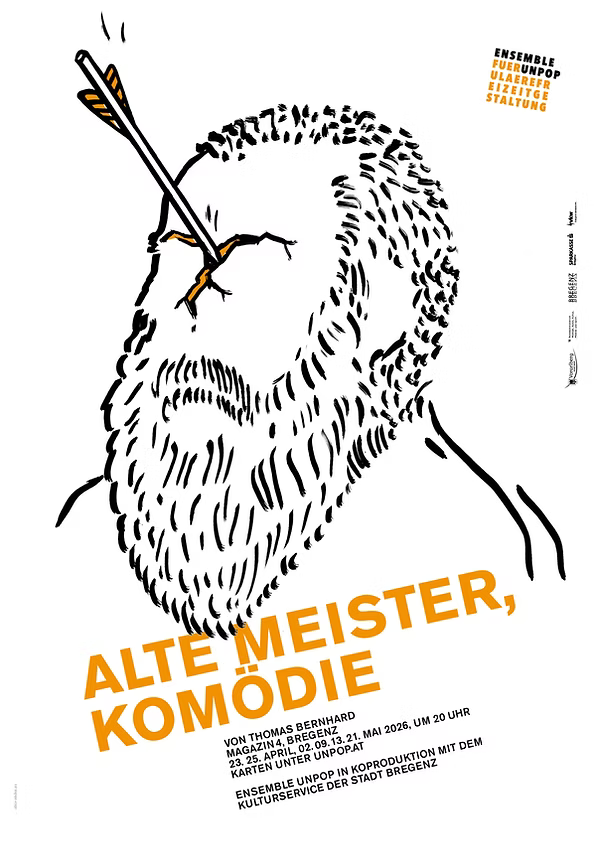 Das Ensemble für unpopuläre Freizeitgestaltung bringt in Koproduktion mit dem Kulturservice der Stadt Bregenz Thomas Bernhards Roman Alte Meister auf die Bühne – und verlässt dafür den klassischen Theaterraum. In der Regie- und Bühnenfassung von Stephan Kasimir wird Alte Meister als Bühnensolo für die Schauspielerin Maria Fliri realisiert. Aufführungsort ist nicht ein Theater, sondern das Magazin 4, der Ausstellungsraum der Stadt Bregenz für moderne Kunst. Ein zentrales Element der Produktion ist das Bühnen- und Raumkonzept von Caro Stark: Der Ausstellungsraum wird selbst zum Bühnenbild – und das Bühnenbild zur Ausstellung.